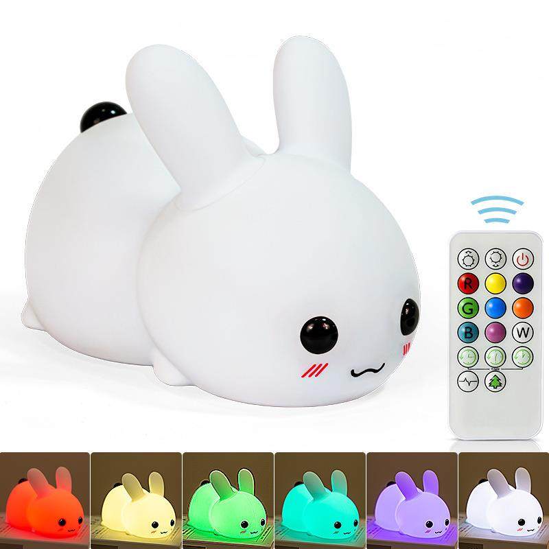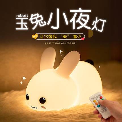 创意可爱玉兔硅胶七彩小夜灯送礼品卧室床头伴睡拍拍氛围led台灯