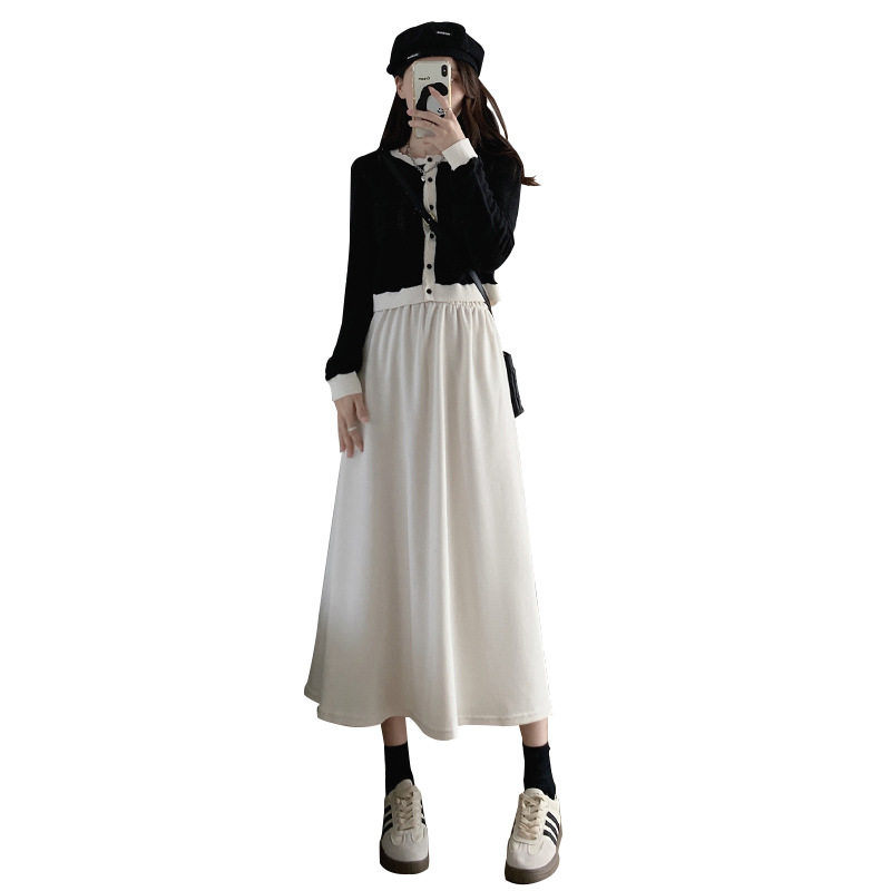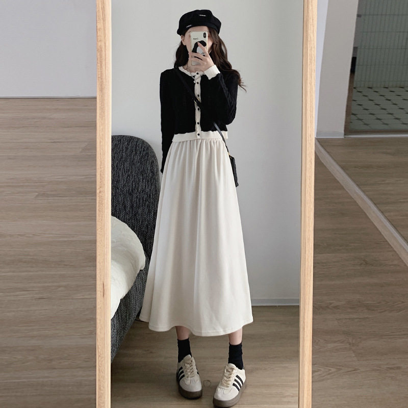 春秋新款高腰木棉绒A字裙