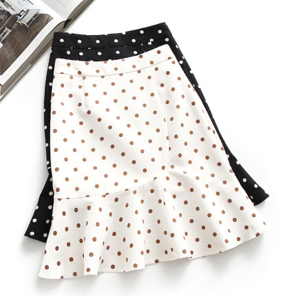 鱼尾裙半身裙女2025夏季新款高腰圆点不规则中长款波点裙包臀裙子