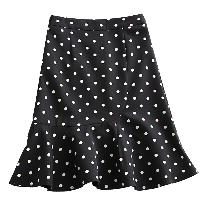 波点裙高腰包臀裙中长款A字版型