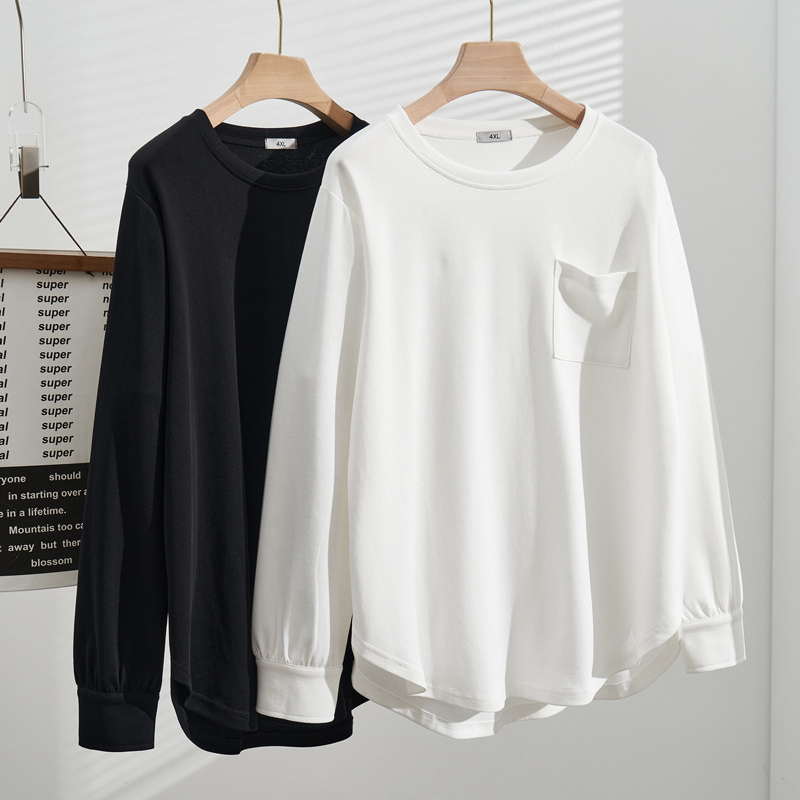 大码遮屁股卫衣女春秋中长款打底衫200斤胖mm宽松长袖T恤配鲨鱼裤