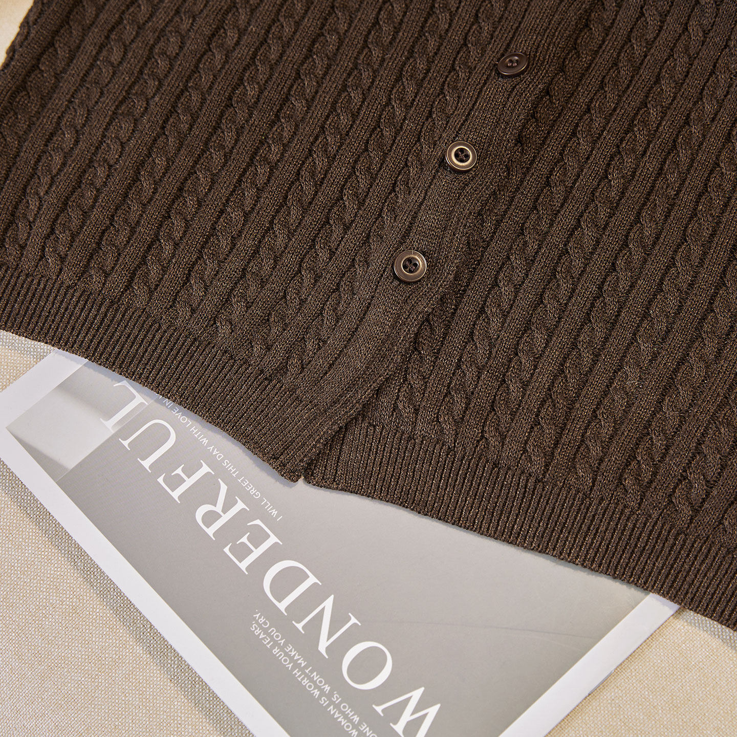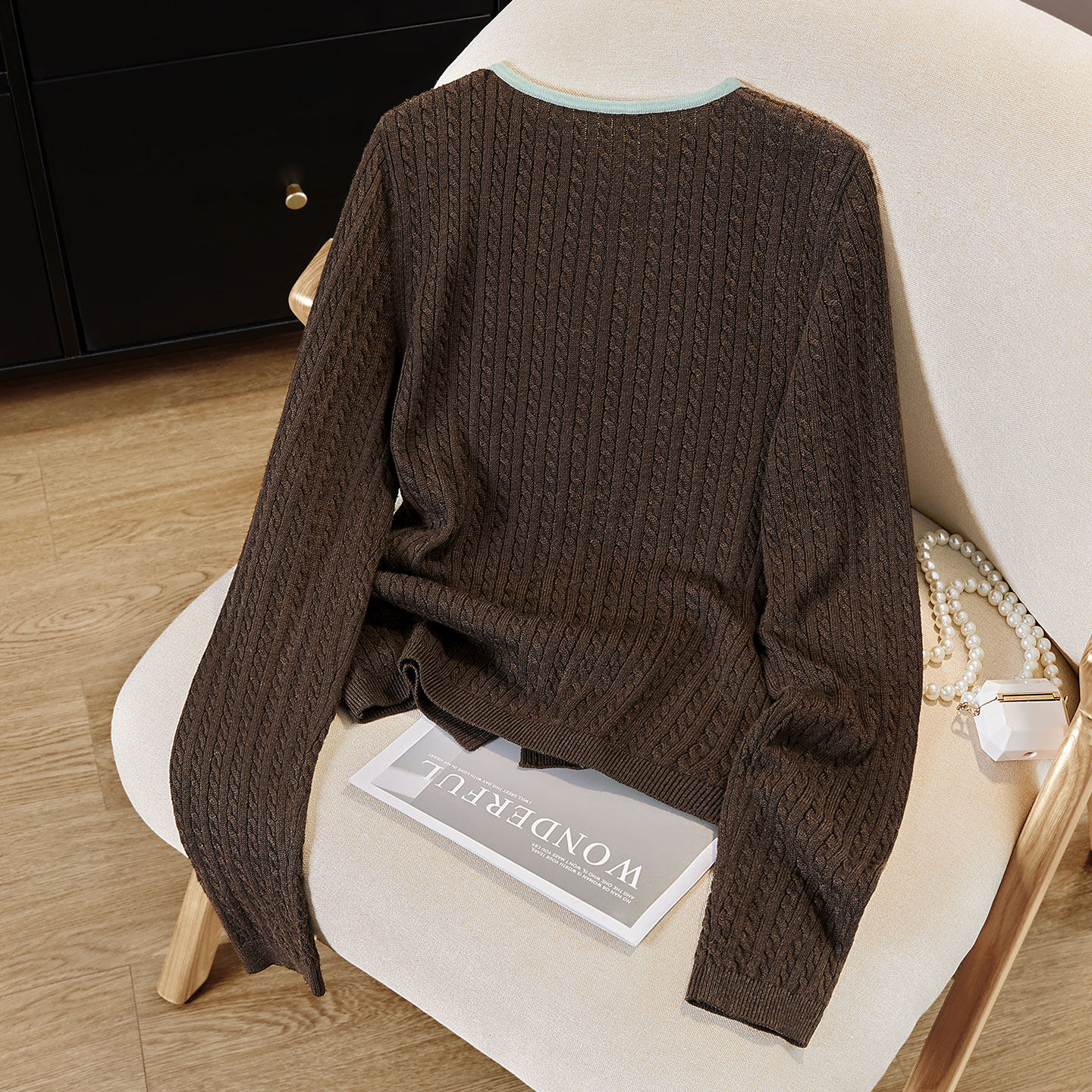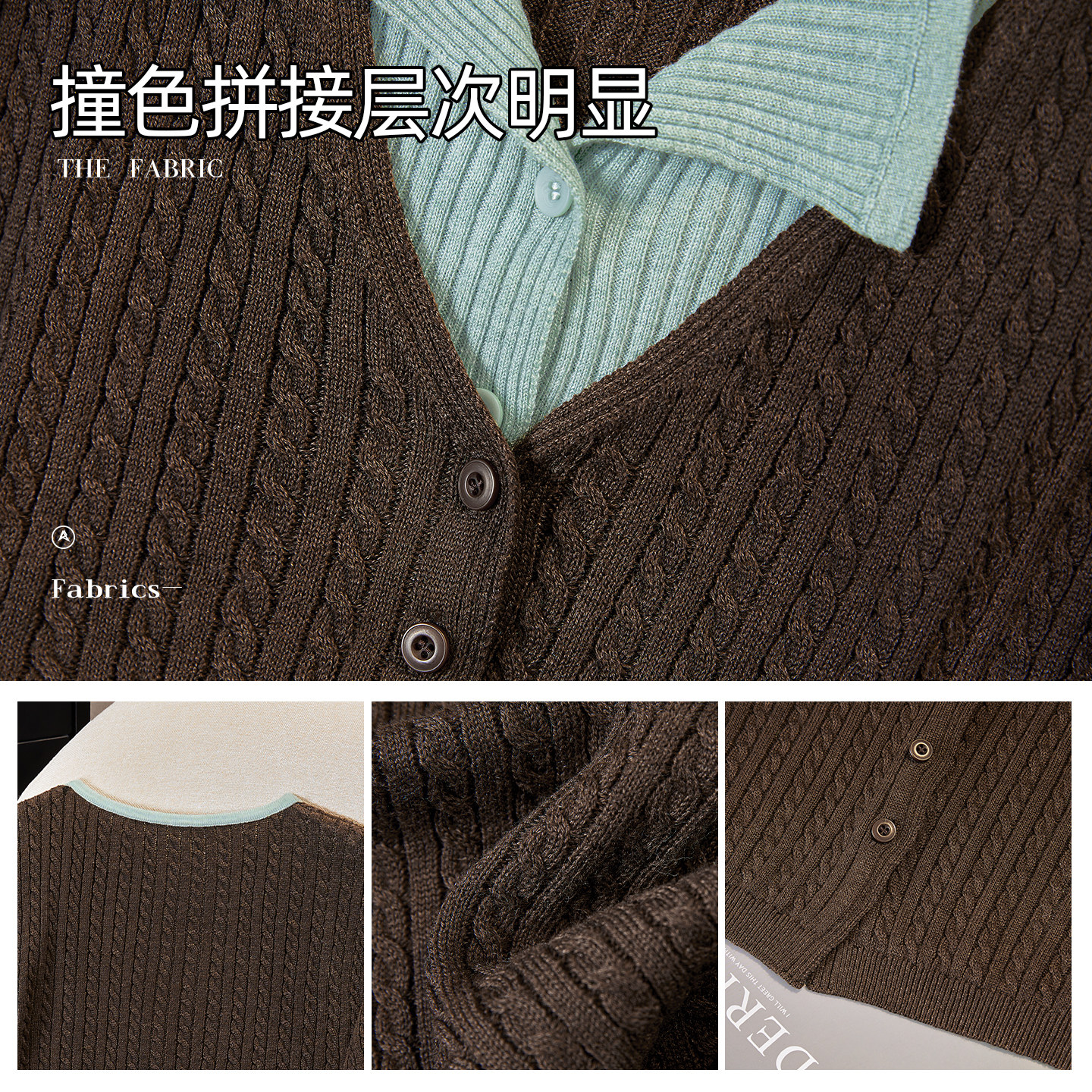 她池假两件针织衫2026春装新款女装撞色拼接纽扣正肩修身短款上衣