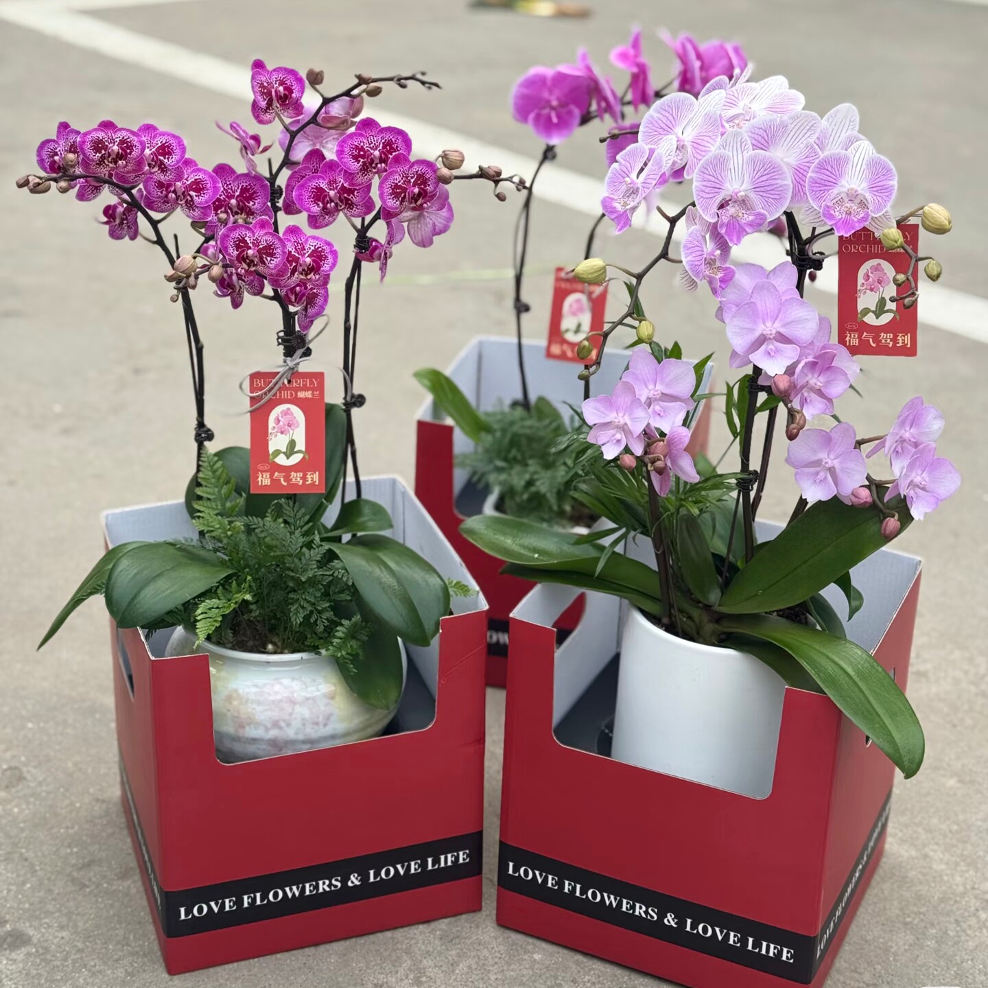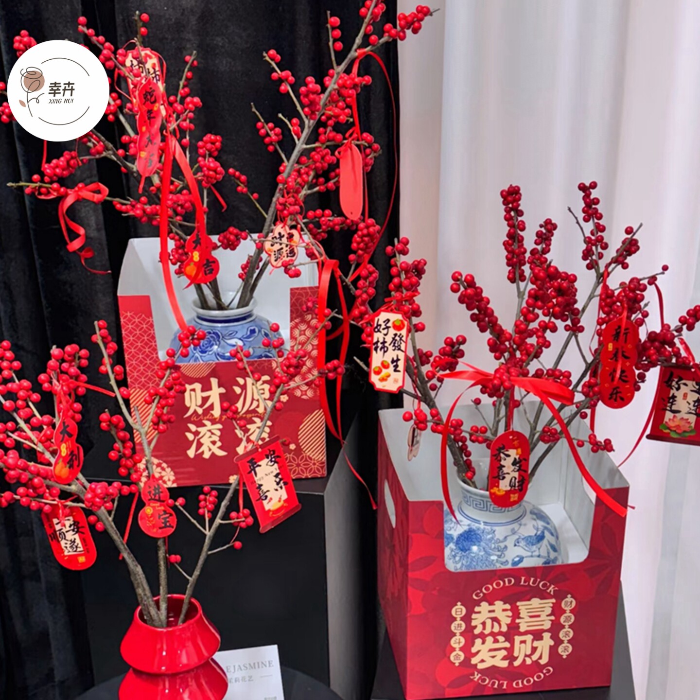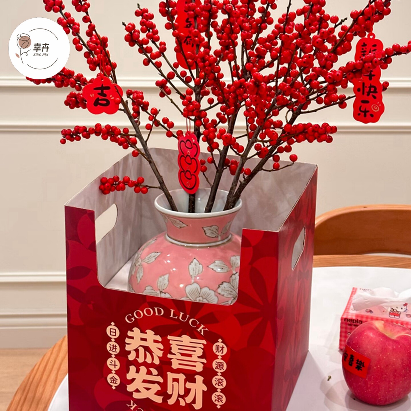 年宵花冬青红果蝴蝶兰手提花盒新年鲜花插花包装纸盒年宵盆栽礼盒