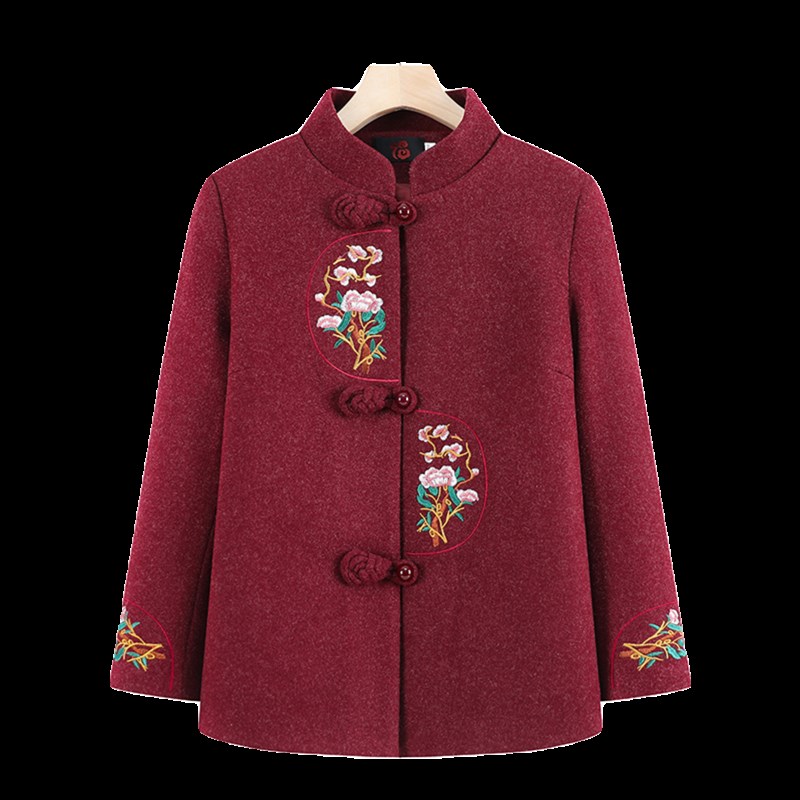 老人奶奶唐装春秋外套女70岁80中老年人妈妈秋冬毛呢上衣2023新款