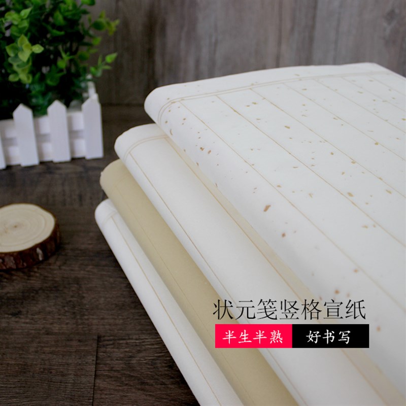 包邮四尺对开半生半熟竖条格状元笺卷宣纸毛笔小楷行书书法创作用
