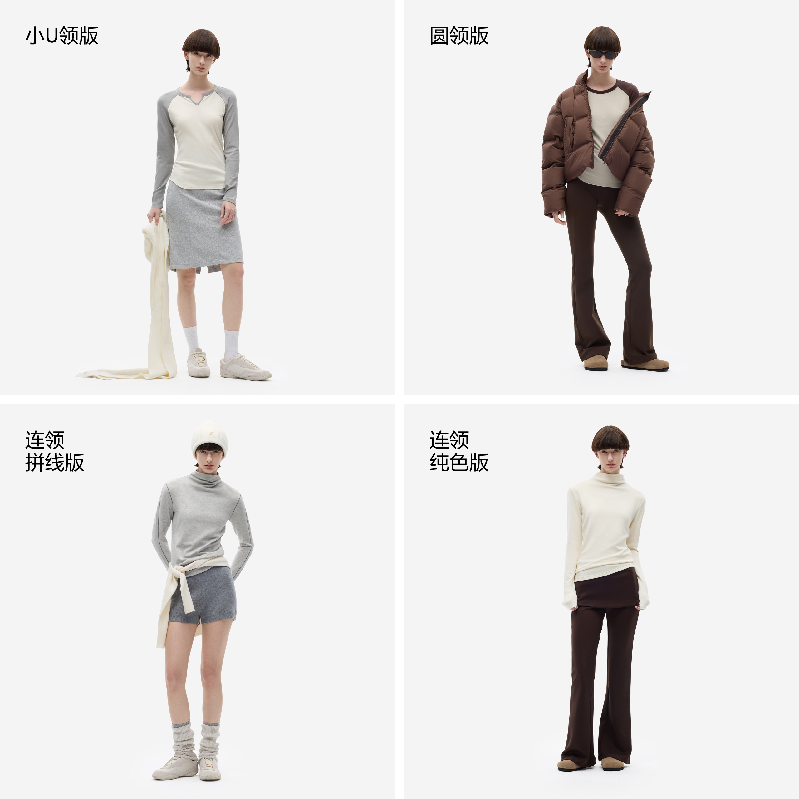 蕉内打底衫热皮502++女士T恤纯色肌底衣圆领保暖内衣修身上衣内搭