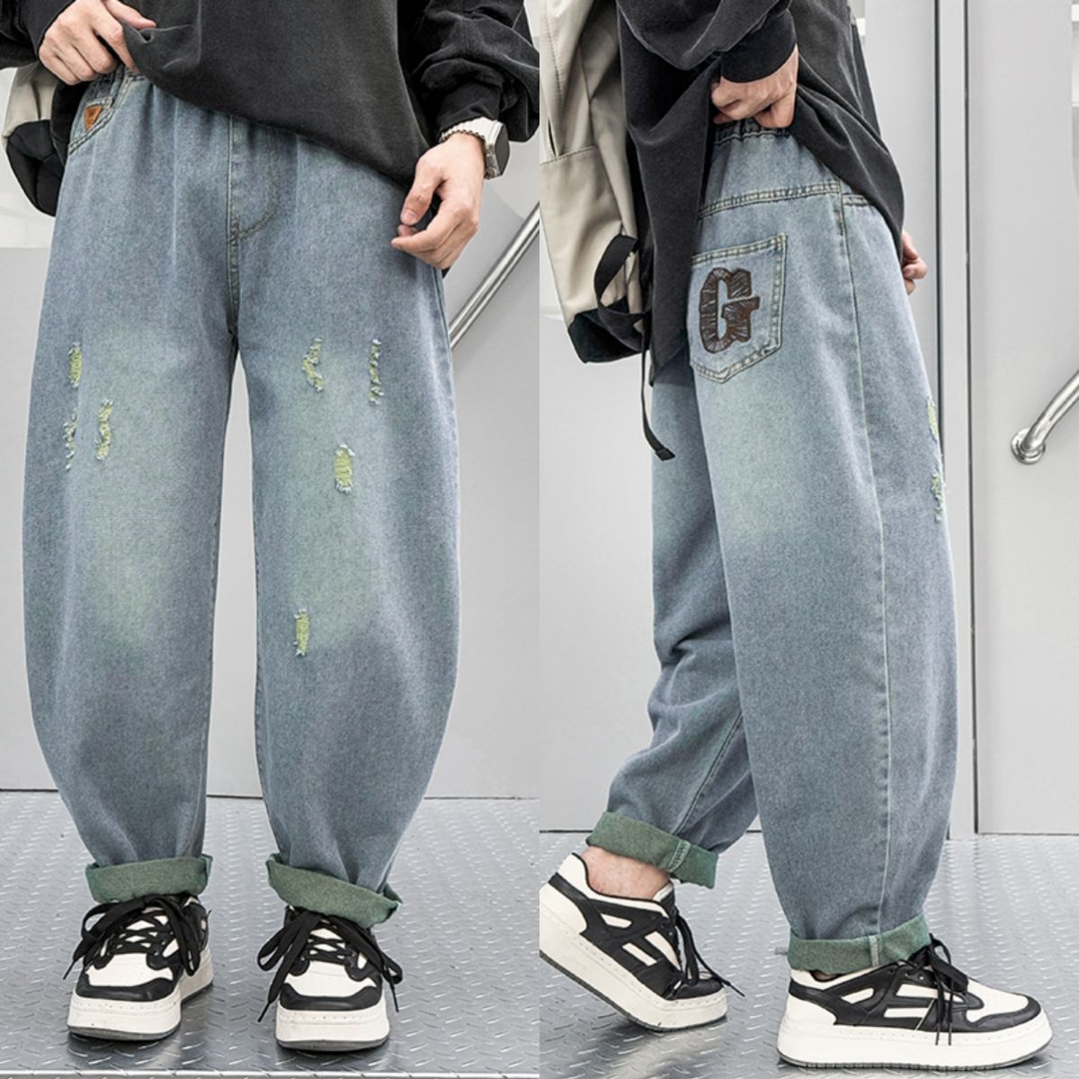 男童春秋牛仔裤新款长裤韩版时髦哈伦裤霸气中大童老爹裤子