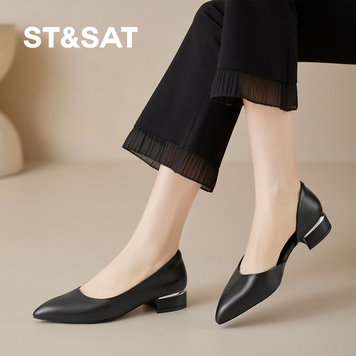 星期六法式绝美不累脚尖头女单鞋2025春季新款浅口一脚蹬低跟女鞋