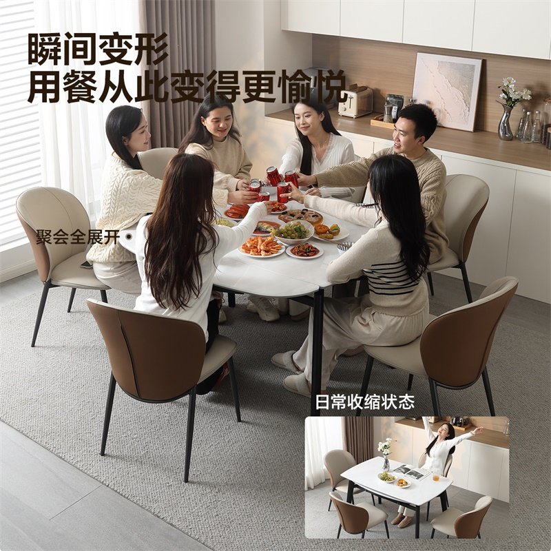 政府补贴全友家居意式极简微晶石餐桌客厅家用多功能折叠饭桌椅
