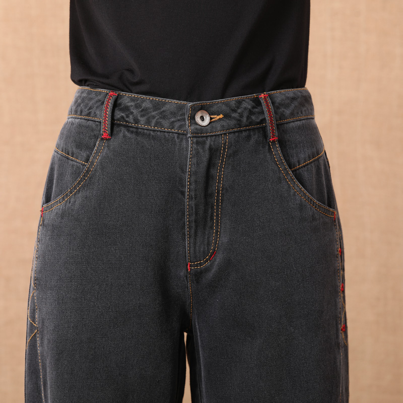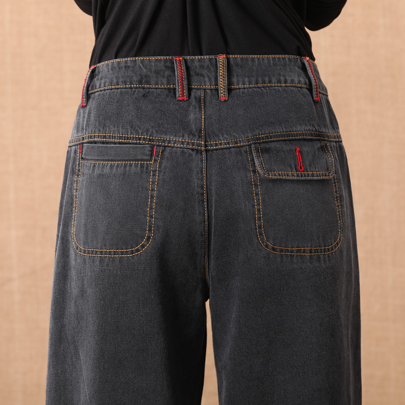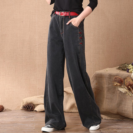 黑灰色高腰阔腿牛仔裤显瘦显高