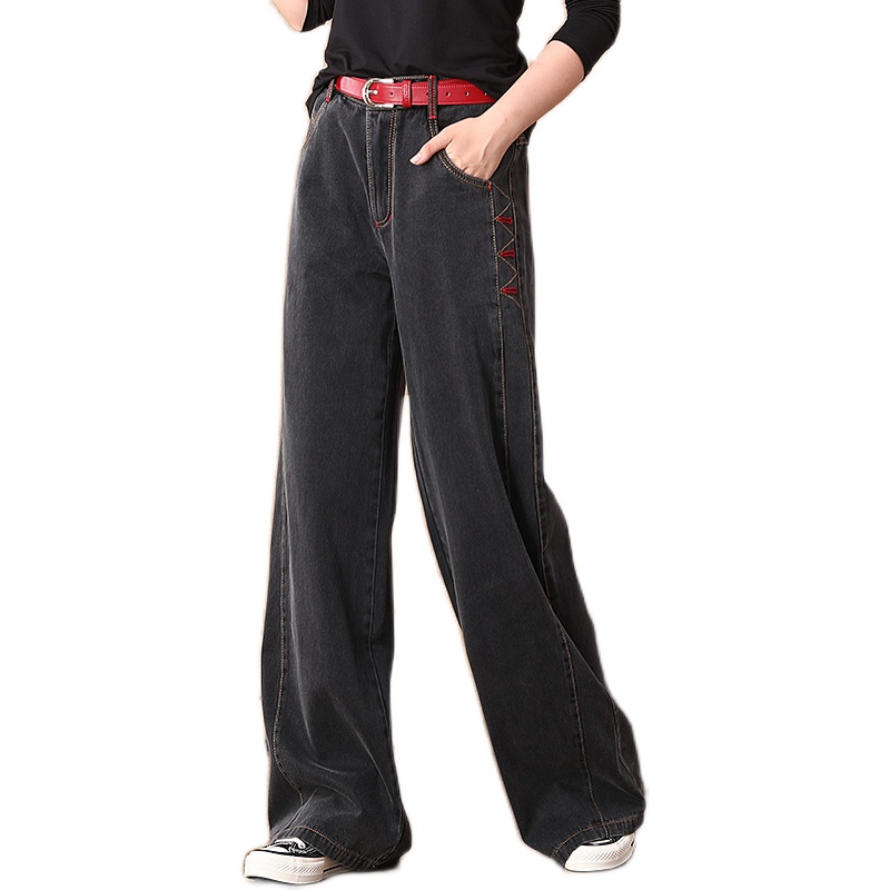 黑灰色高腰阔腿牛仔裤女显瘦显高加长高个子直筒拖地垂感复古春秋
