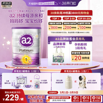【自营】a2新升级紫白金版婴幼儿牛奶粉1段 0-6个月宝宝 900g