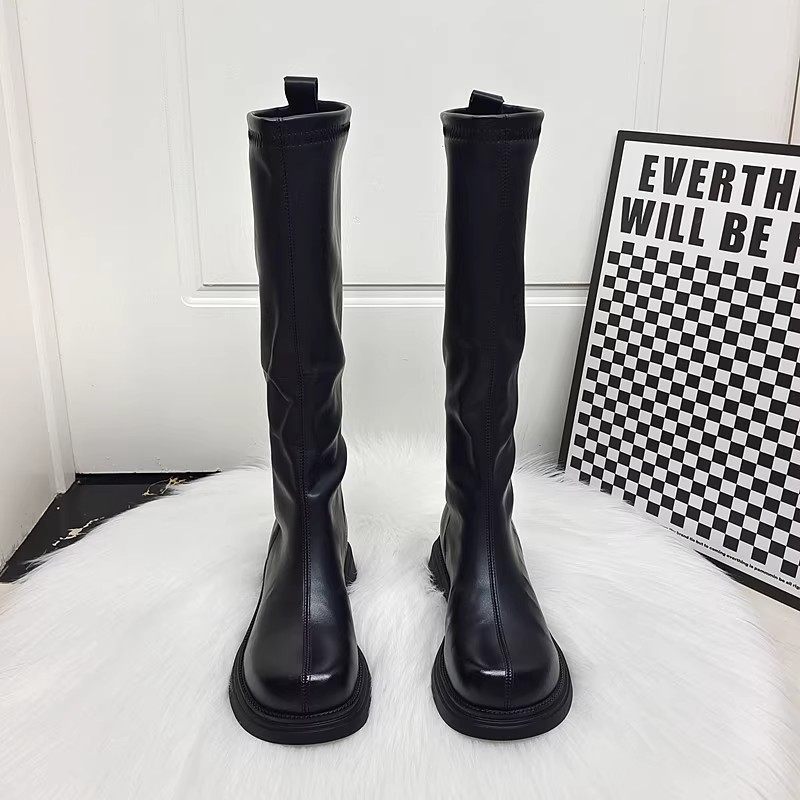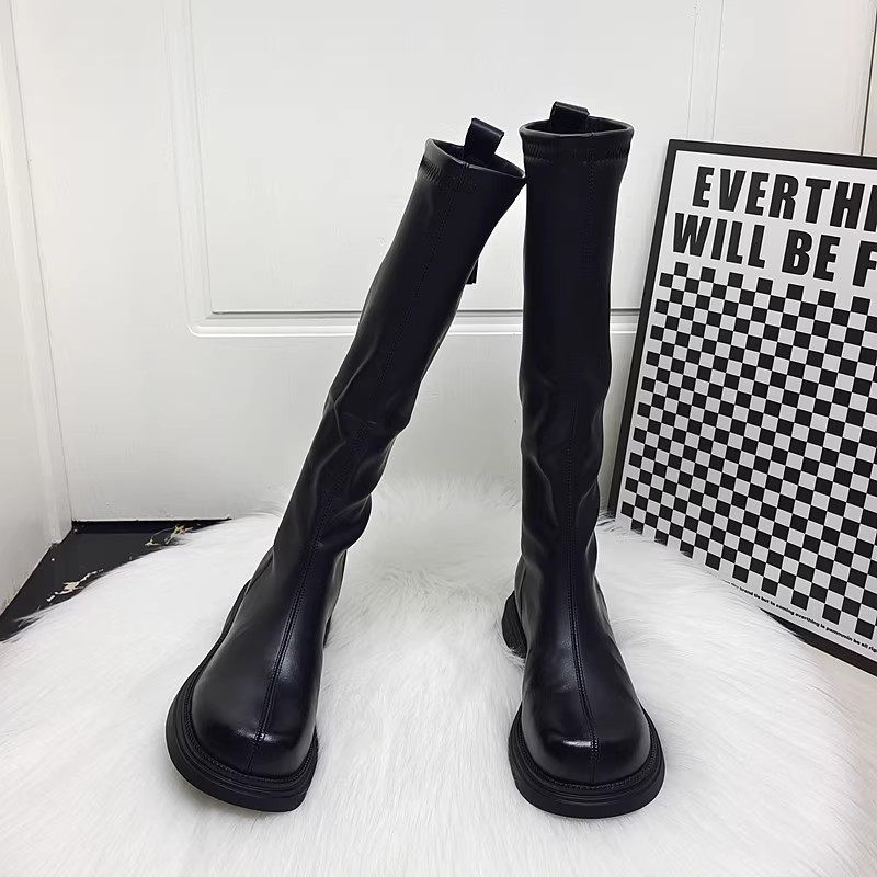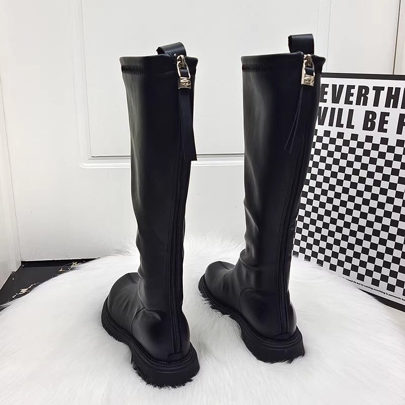 真皮显瘦弹力靴后拉链长筒马丁靴