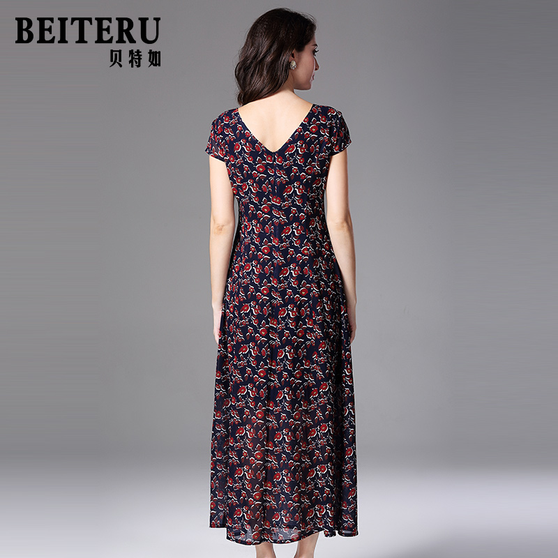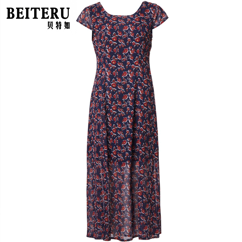 贝特如夏装短袖碎花长裙女洋气中年时尚妈妈雪纺连衣裙专柜正品YB