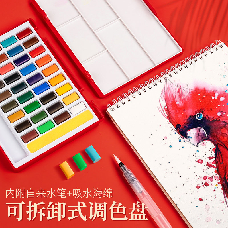 德国辉柏嘉24色固体水彩颜料套装初学者手绘36色48色透明水彩画颜料分装便携水粉颜料固体画笔本套装组合