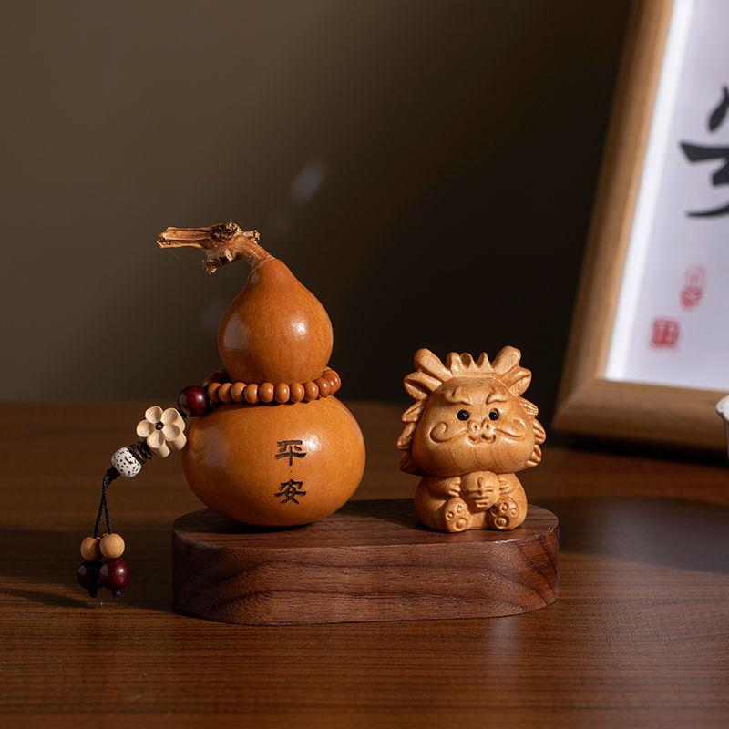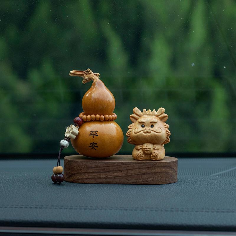车载治愈情绪小摆件崖柏木雕十二生肖文玩葫芦摆件桌面饰品高档汽