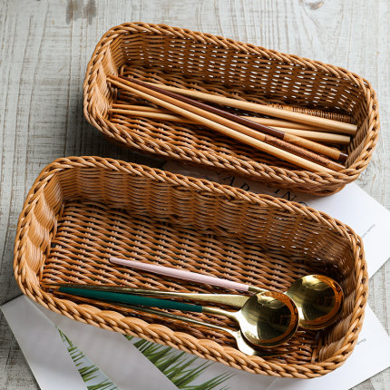 kens仿藤编桌面餐具收纳盒 酒店餐厅刀叉筷子笼遥控器钥匙收纳筐