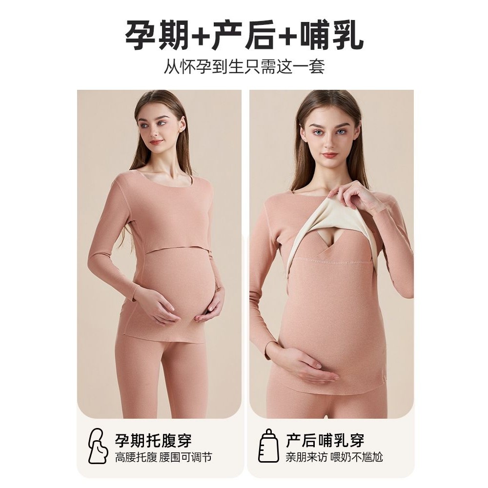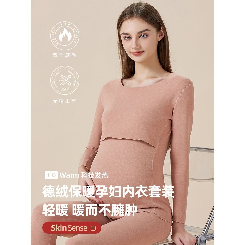 罗丽丝孕妇秋衣秋裤套装德绒保暖内衣孕期秋冬产后哺乳期睡衣大码