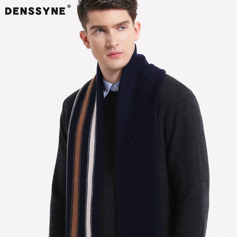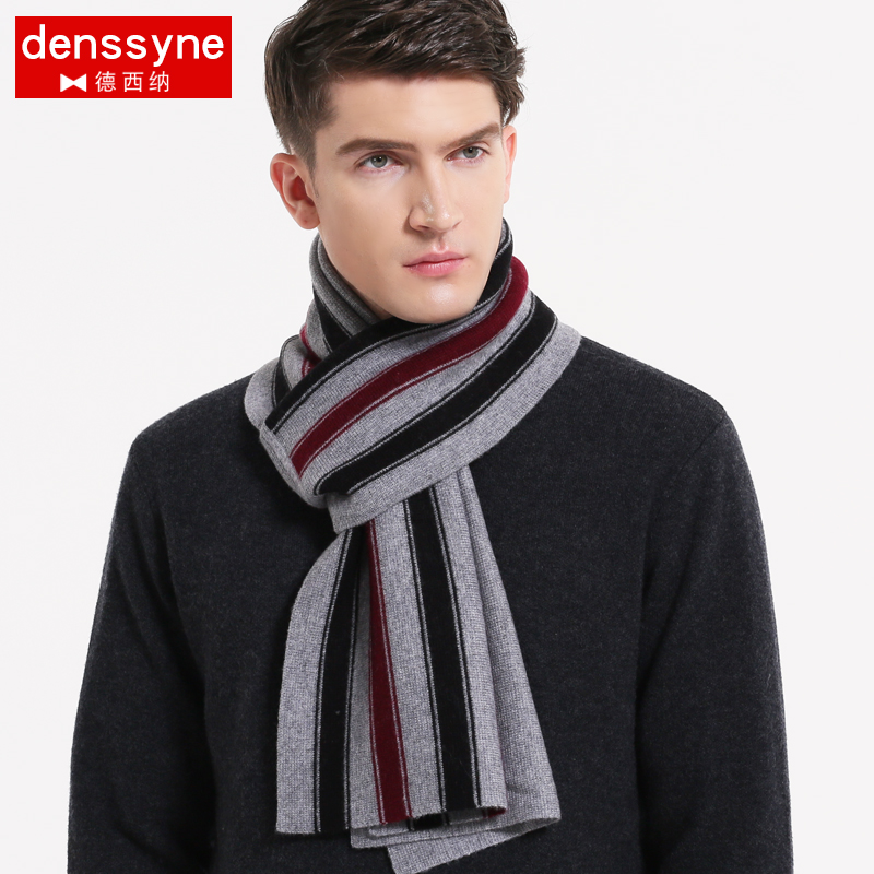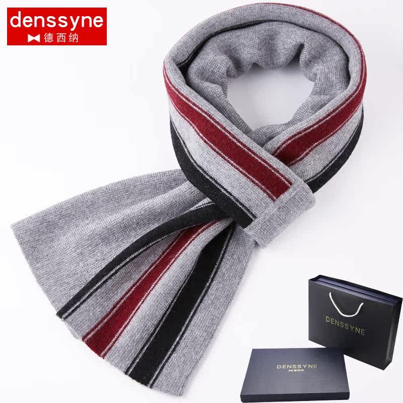 纯羊毛围巾男针织围脖加厚条纹青年中年英伦加厚冬季保暖礼盒装