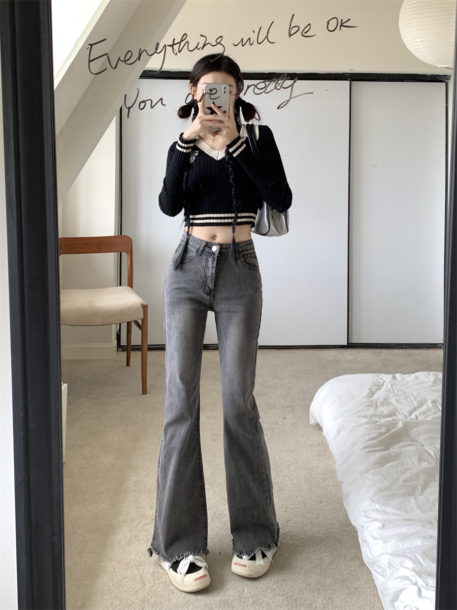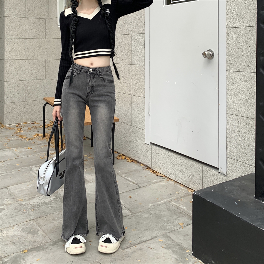 梨形身材高腰牛仔裤女春秋大码小个子胖妹妹遮胯显瘦微喇拖地裤子