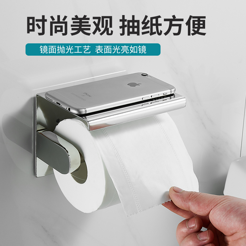 卫生间不锈钢卷纸架厕所壁挂式手机置物架洗手间免打孔挂墙厕纸架