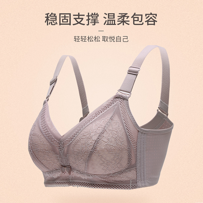 芬腾内衣女蕾丝性感无钢圈防下垂大胸显小胸罩全罩杯聚拢上托文胸