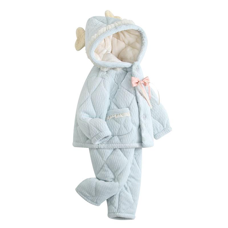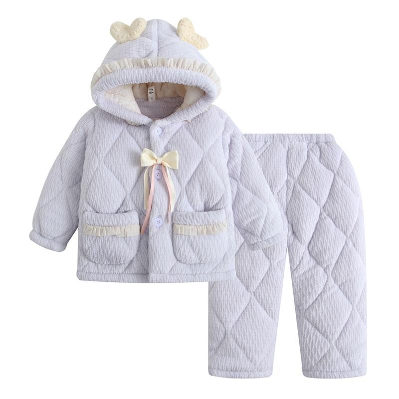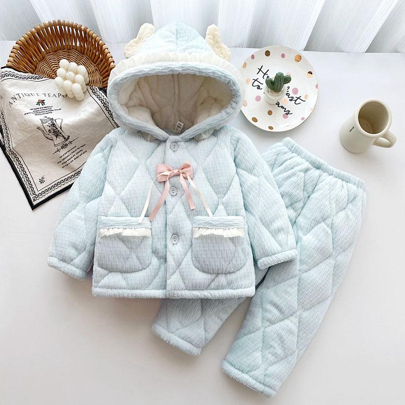 女童睡衣冬季三层夹棉套装中大童女孩公主风荷叶边儿童连帽家居服