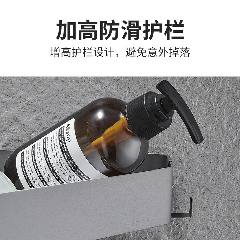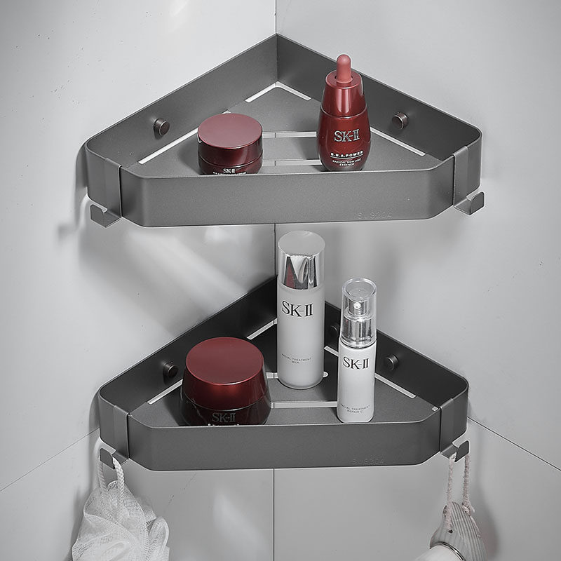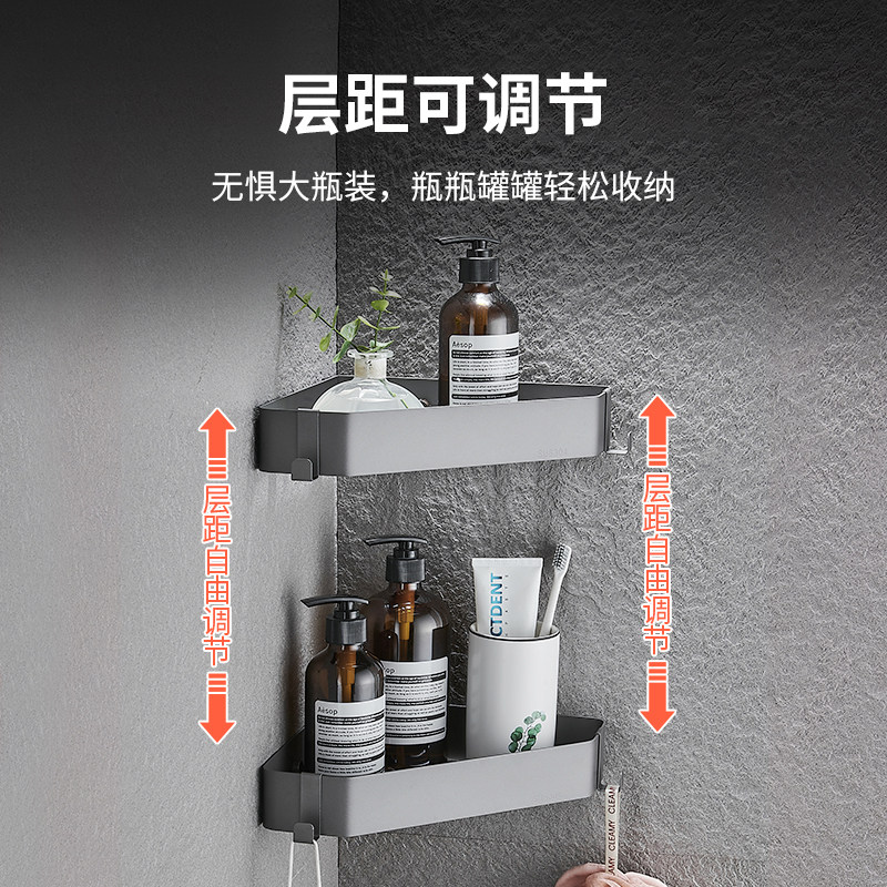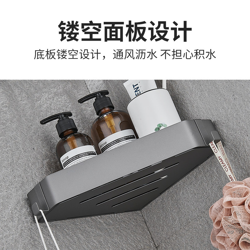 枪灰浴室三角置物架不锈钢免打孔淋浴房卫生间转角篮壁挂收纳架