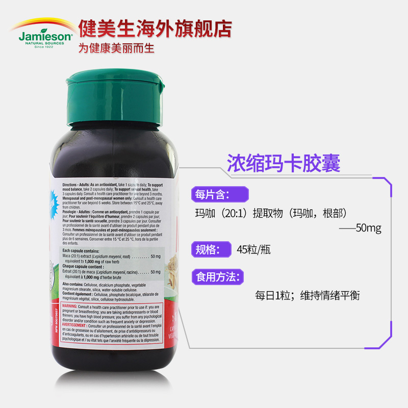 Jamieson健美生进口玛咖地道秘鲁玛卡maca胶囊情绪身体年轻态45粒