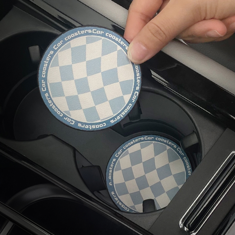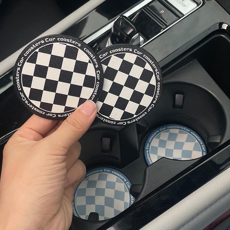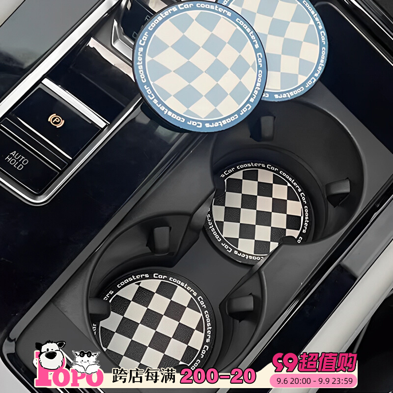 棋盘格汽车水杯垫高级创意防滑垫储物槽垫子车载好物车内装饰品