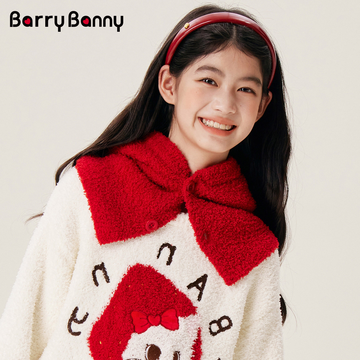 BarryBanny女童帽子围脖一体毛线帽2025秋冬季新款保暖防风护耳帽