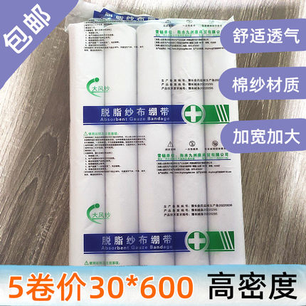医用纱布高密度绷带宽30cm长6米脱脂棉沙布卷伤口包扎弹性5卷医疗