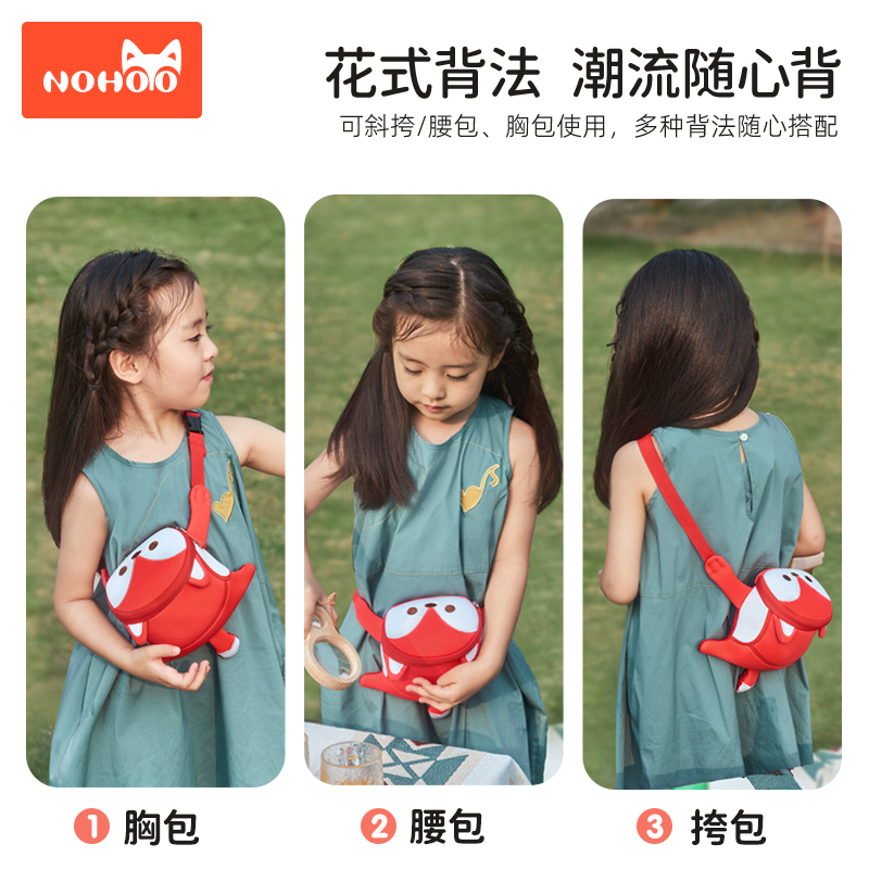 诺狐儿童斜挎包女孩可爱包包男童外出休闲小背包宝宝超萌迷你腰包