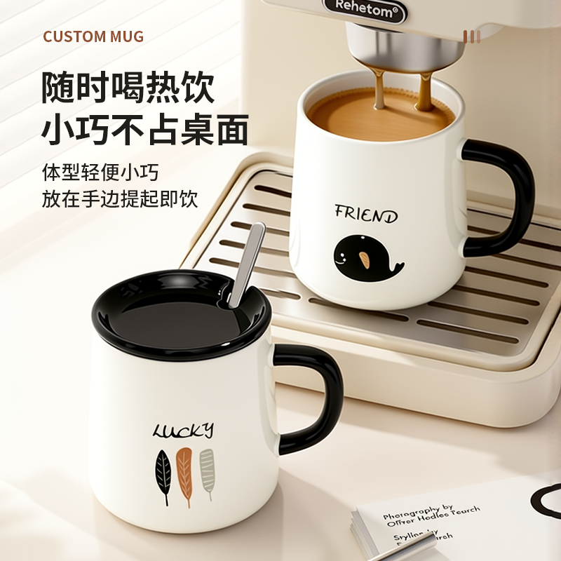 马克杯带盖勺陶瓷杯子女士新款家用喝茶水杯男办公室咖啡杯高颜值