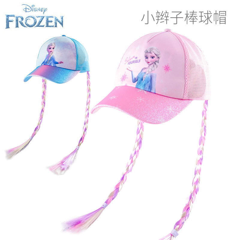 艾莎公主儿童防晒帽子儿童棒球帽发辫遮阳帽女防晒太阳帽礼物辫子