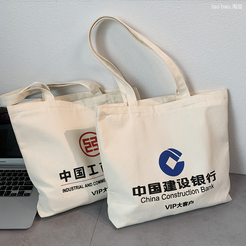 银行手提袋帆布包女夏定制个性小众大容量购物手拎上班学生书包袋