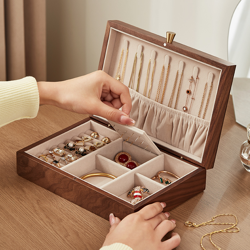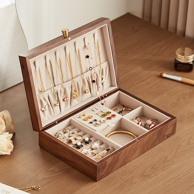 初心黑胡桃实木高档戒指项链耳饰手饰收纳盒送闺蜜首饰盒礼物结婚