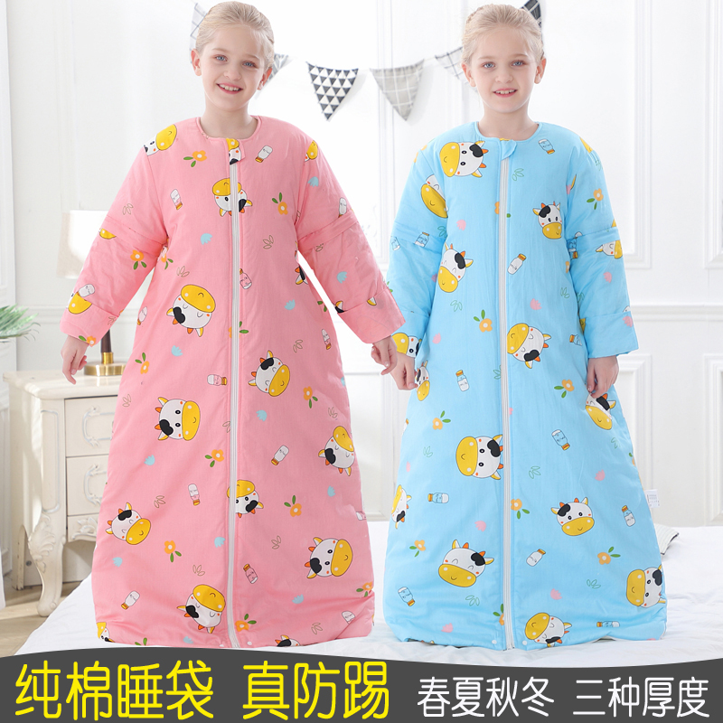 婴儿宝宝恒温睡袋儿童春秋款薄款棉秋冬季加厚中大童防踢被子神器