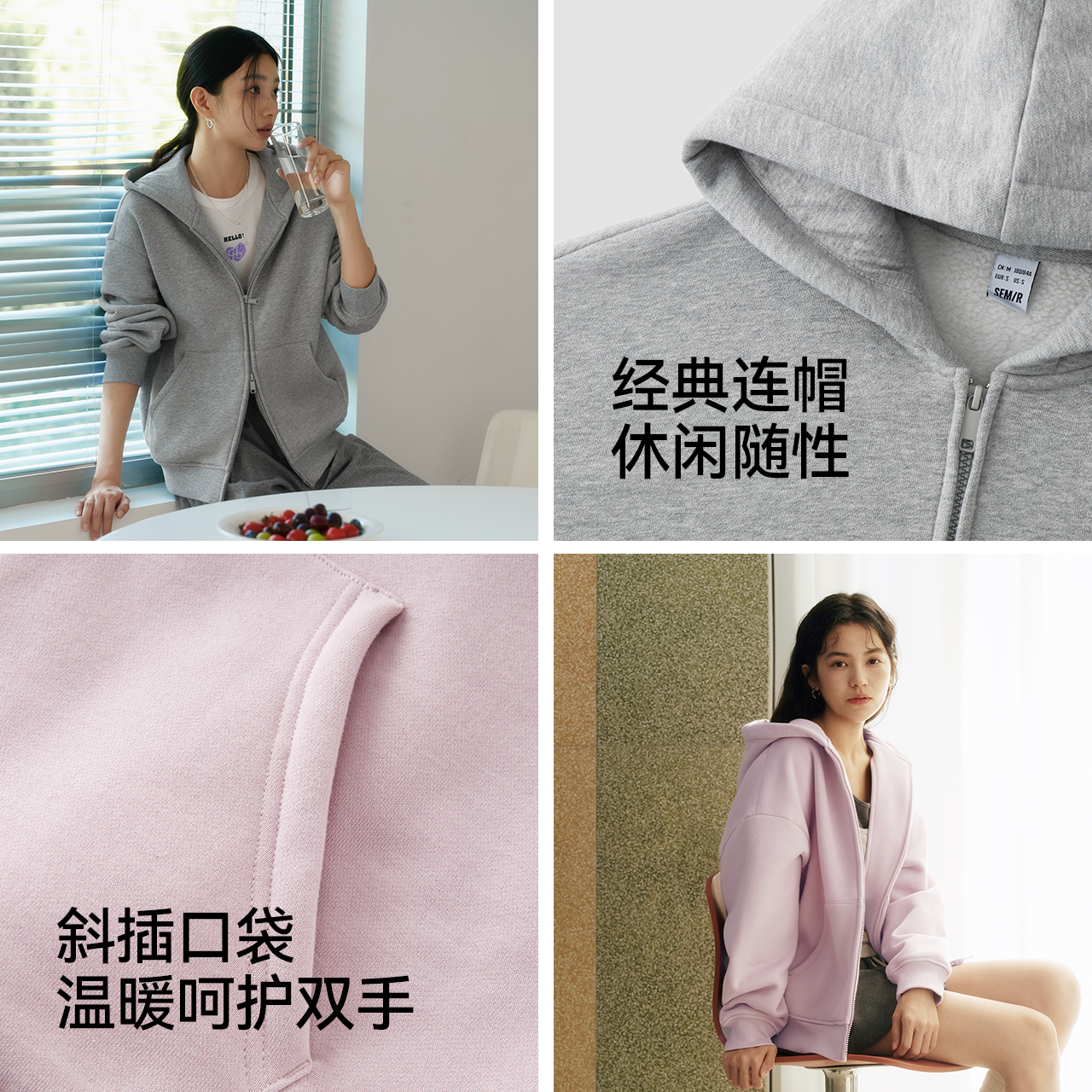 森马摇粒绒宽松落肩连帽外套女