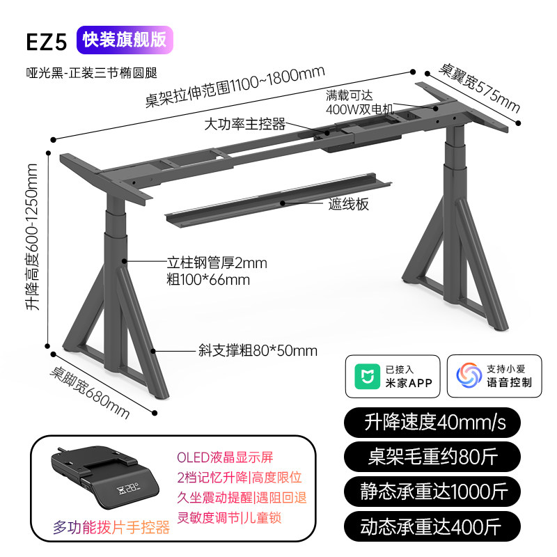 电动升降桌腿双电机支架实木电脑电竞学习桌子智能自动升降桌脚架