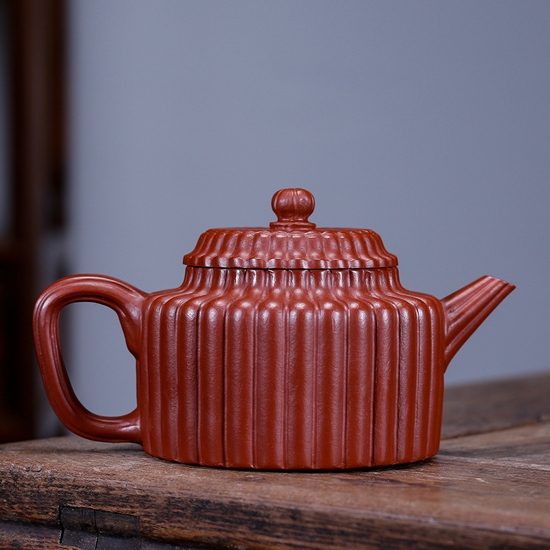 宜兴正品紫砂壶家用壶原矿大红袍手工筋纹德钟壶220毫升