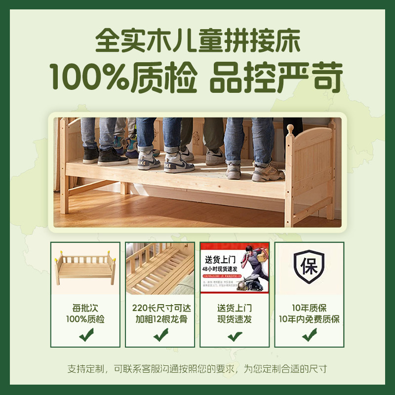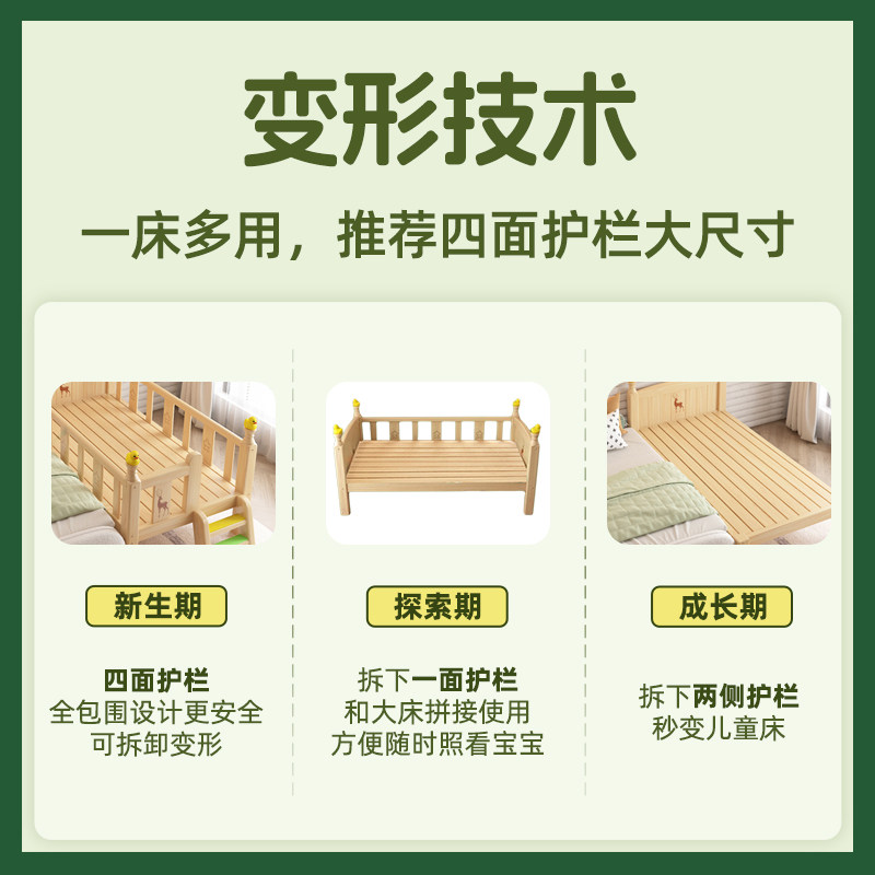 实木儿童床带护栏小床婴儿男孩女孩公主床单人床边床加宽拼接大床