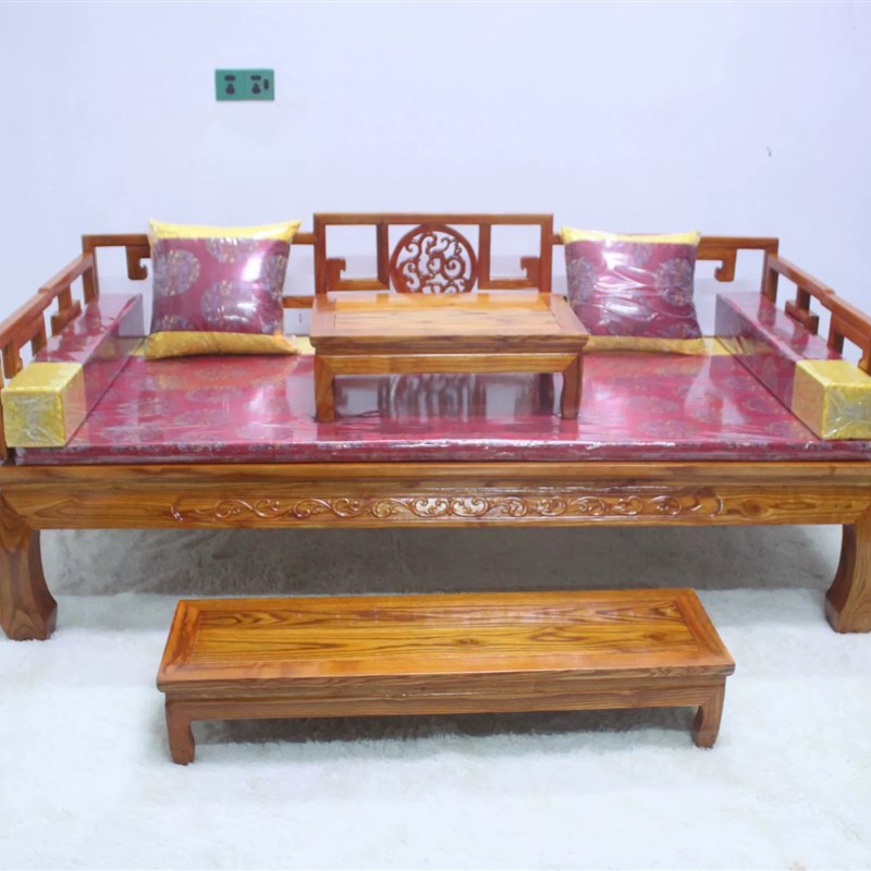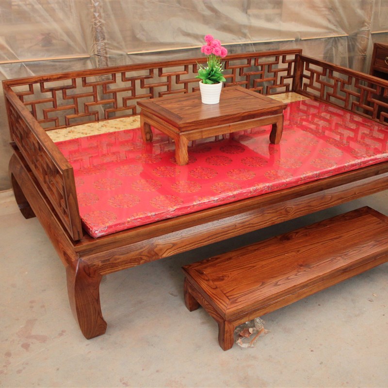罗汉床贵妃榻中式仿古实木榆木小户型新中式雕花沙发床罗汉塌现代