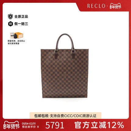 中古LV路易威登女包B级9新Sac plat琴谱包涂层防水帆布托特包正品