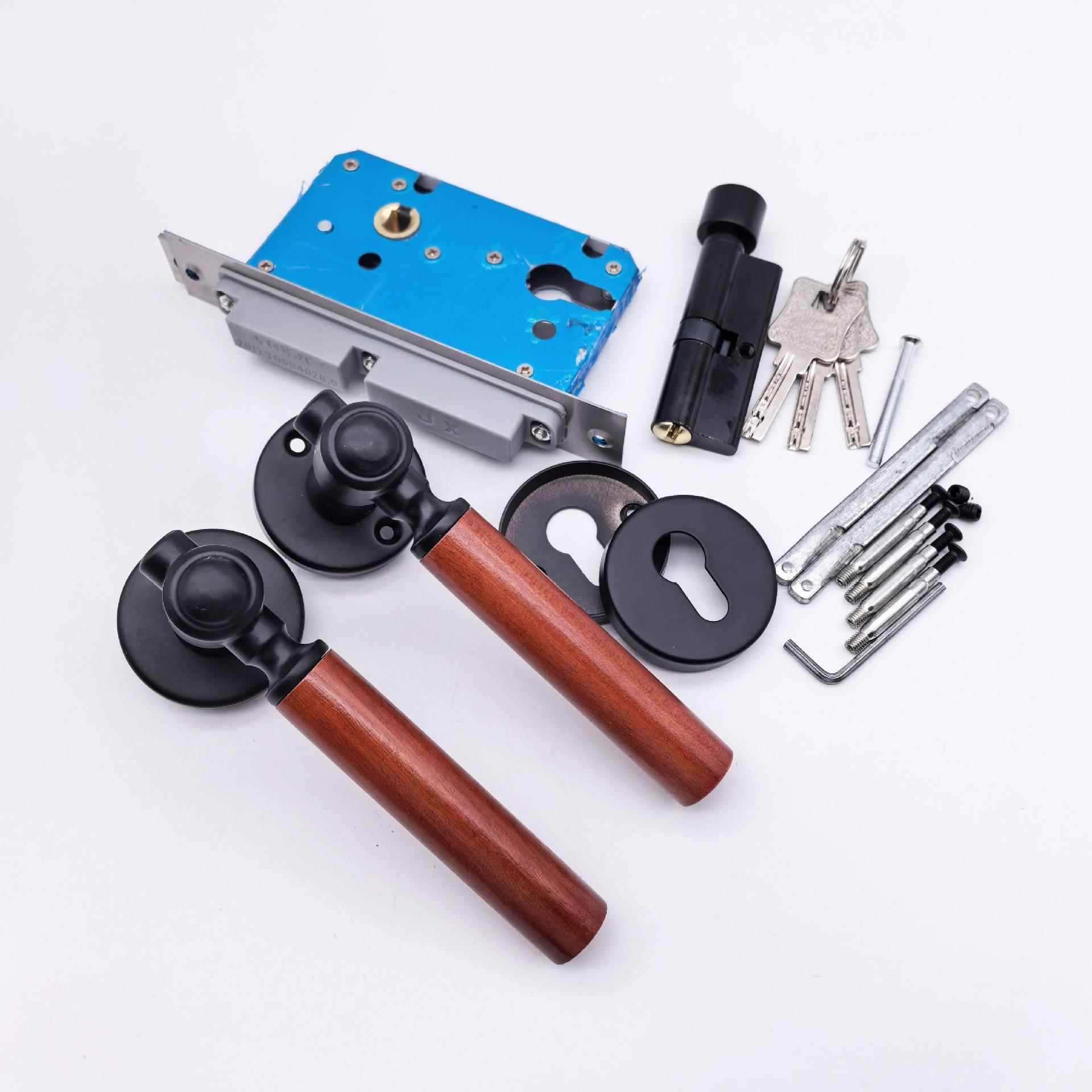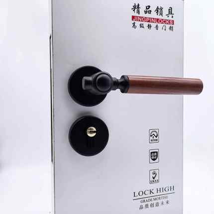 网红中古风家用木门锁复古木质卧室门把手室内静音磁吸分体锁