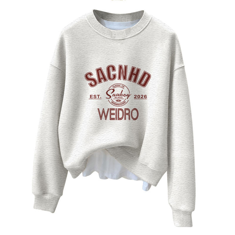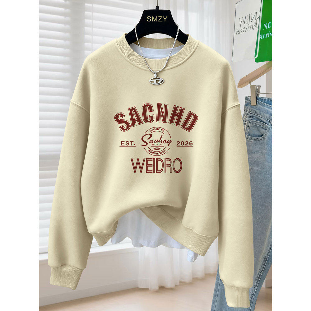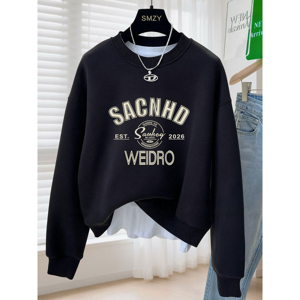 字母百搭圆领卫衣女2025春秋冬宽松慵懒风加绒加厚长袖套头上衣潮