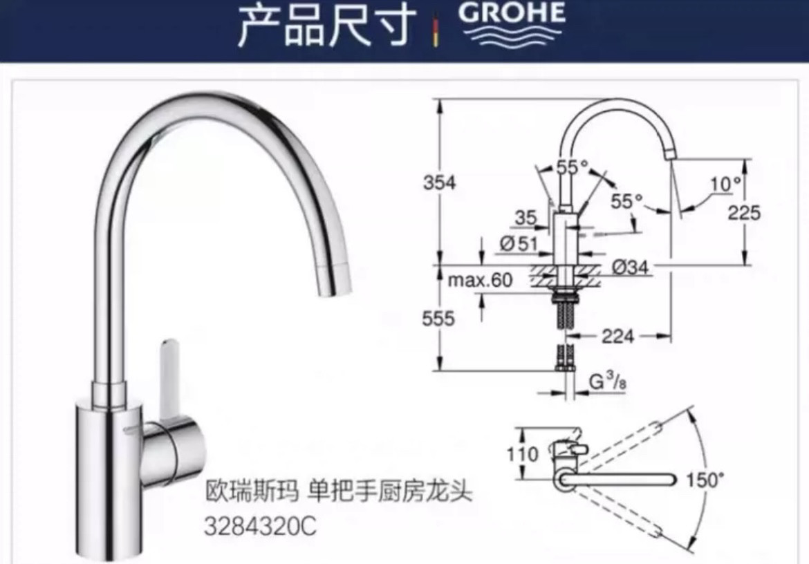 高仪3284320C厨房水槽龙头冷热水陶瓷阀芯可旋转水龙头32843