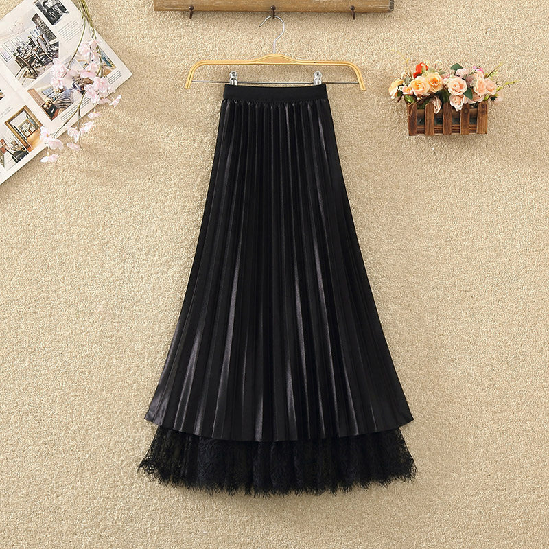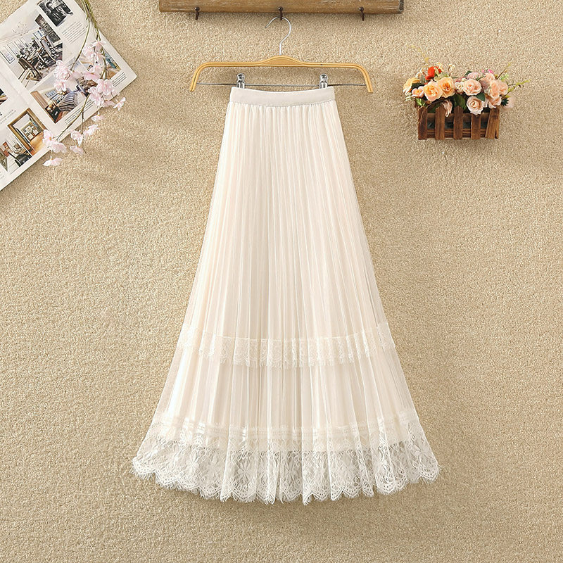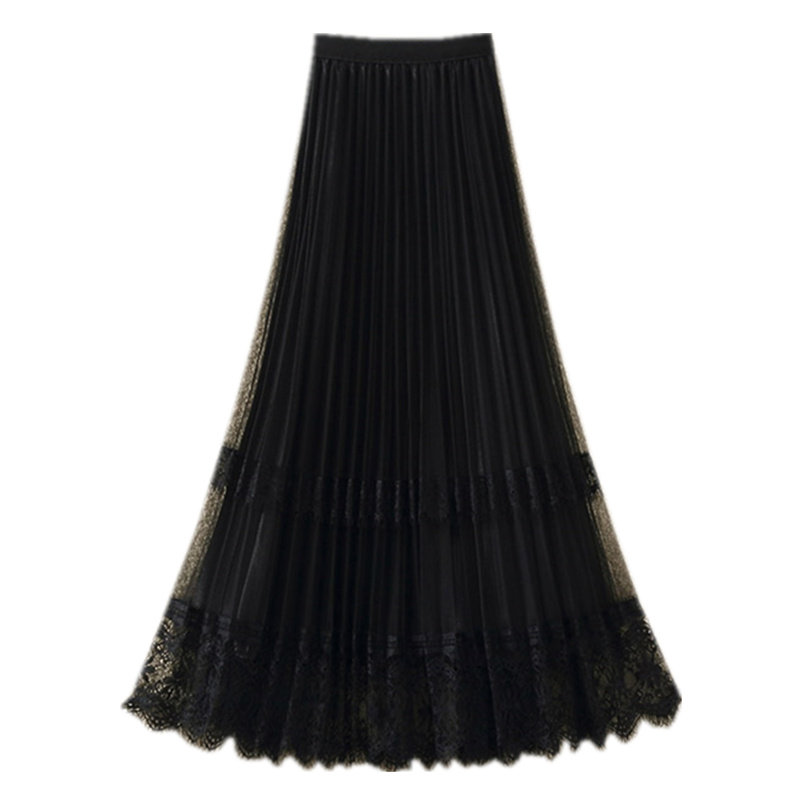 两面穿半身裙春夏高腰双面纱裙中长款百褶裙子蕾丝边拼接网纱裙女