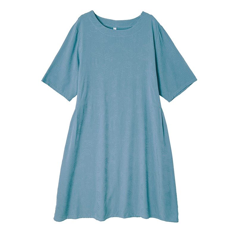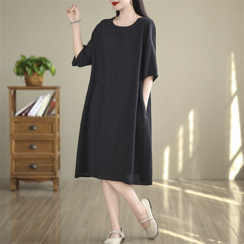 中老年妈妈棉麻短袖连衣裙女夏装2025新款宽松休闲遮肚中长款裙子