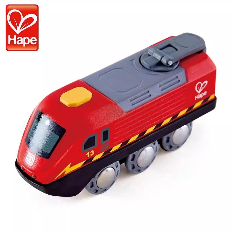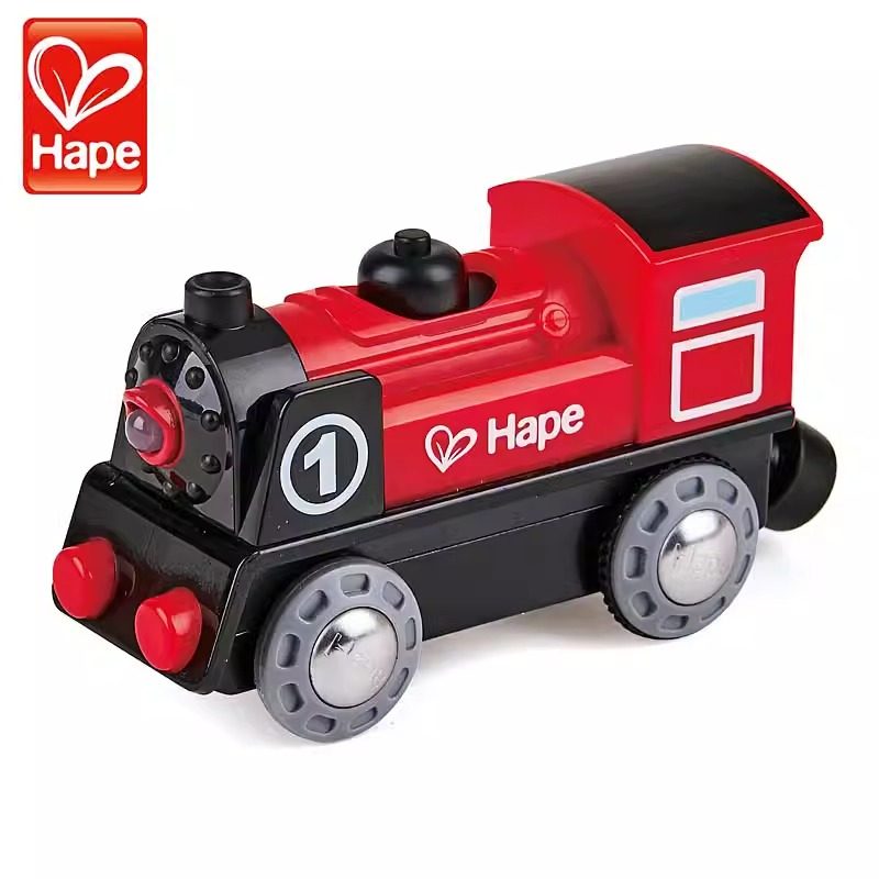 Hape电动木质小火车头轨道儿童益智玩具磁吸火车兼容宜家火车轨道